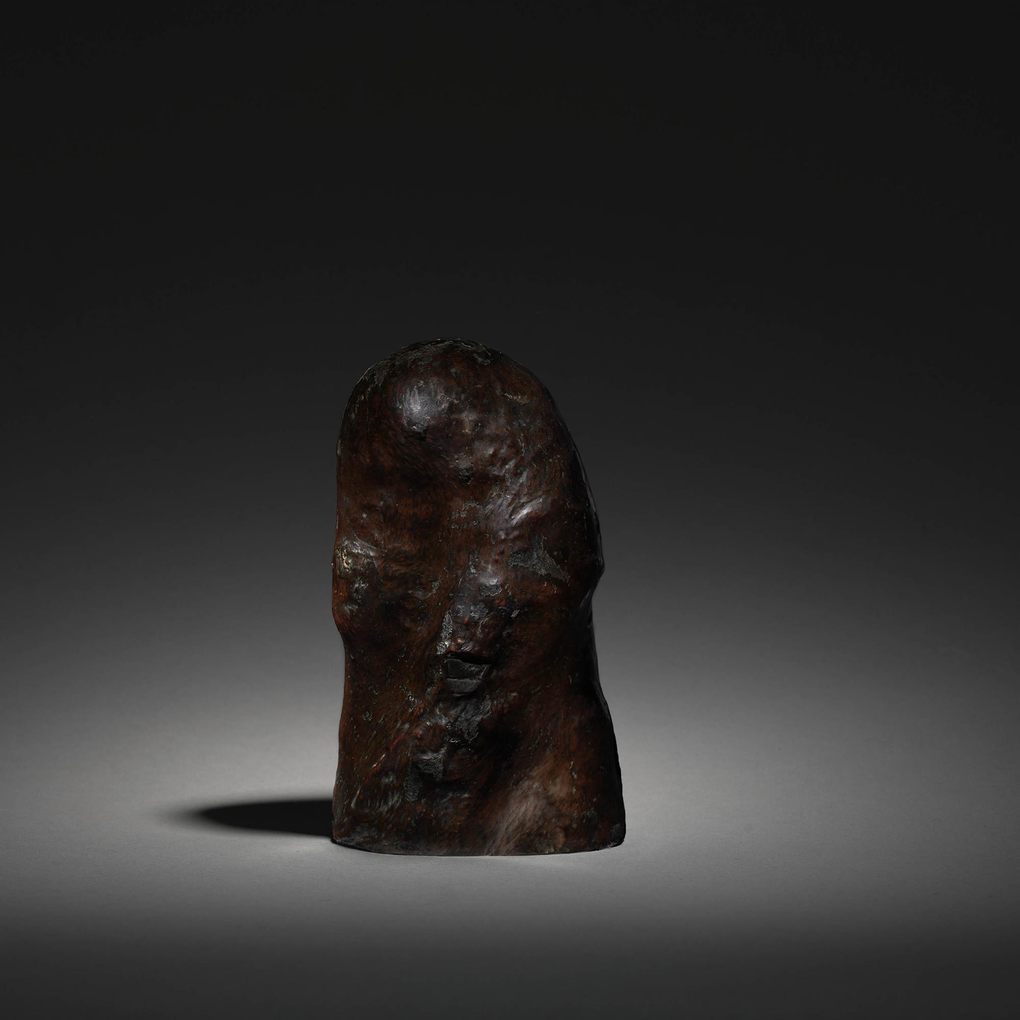 A wonderful natural sculpture, possibly suggesting a Duruma figure in long robes. The heavy wood beautifully formed with a gnarled lacquer finish.