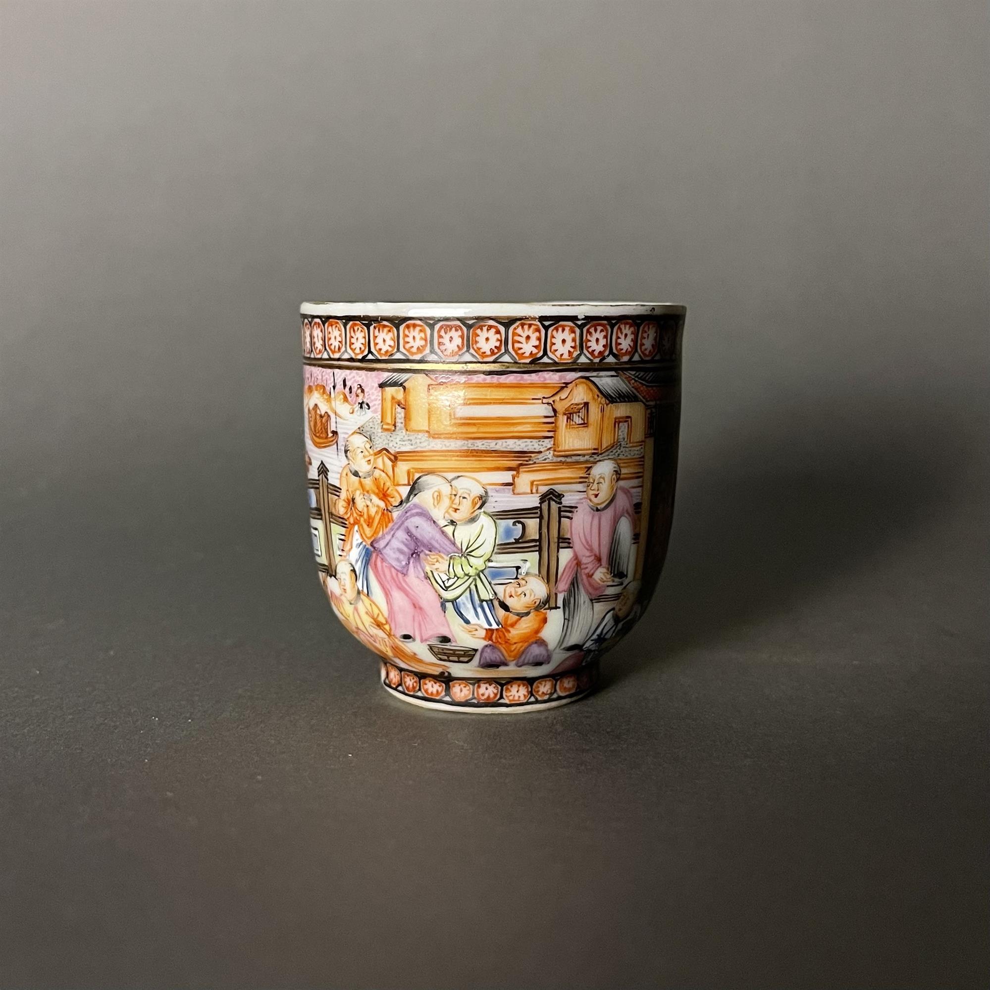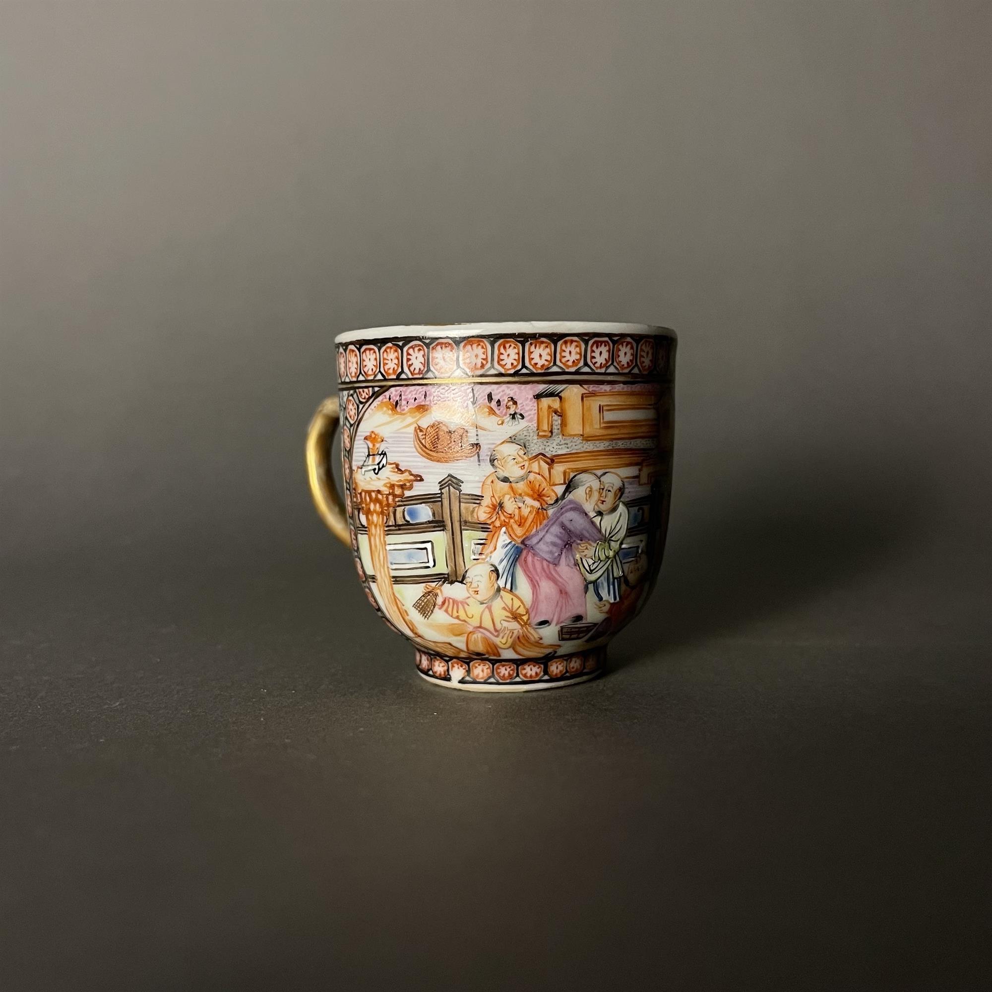 Very finely decorated coffee cup with scenes of children fighting with an interior.