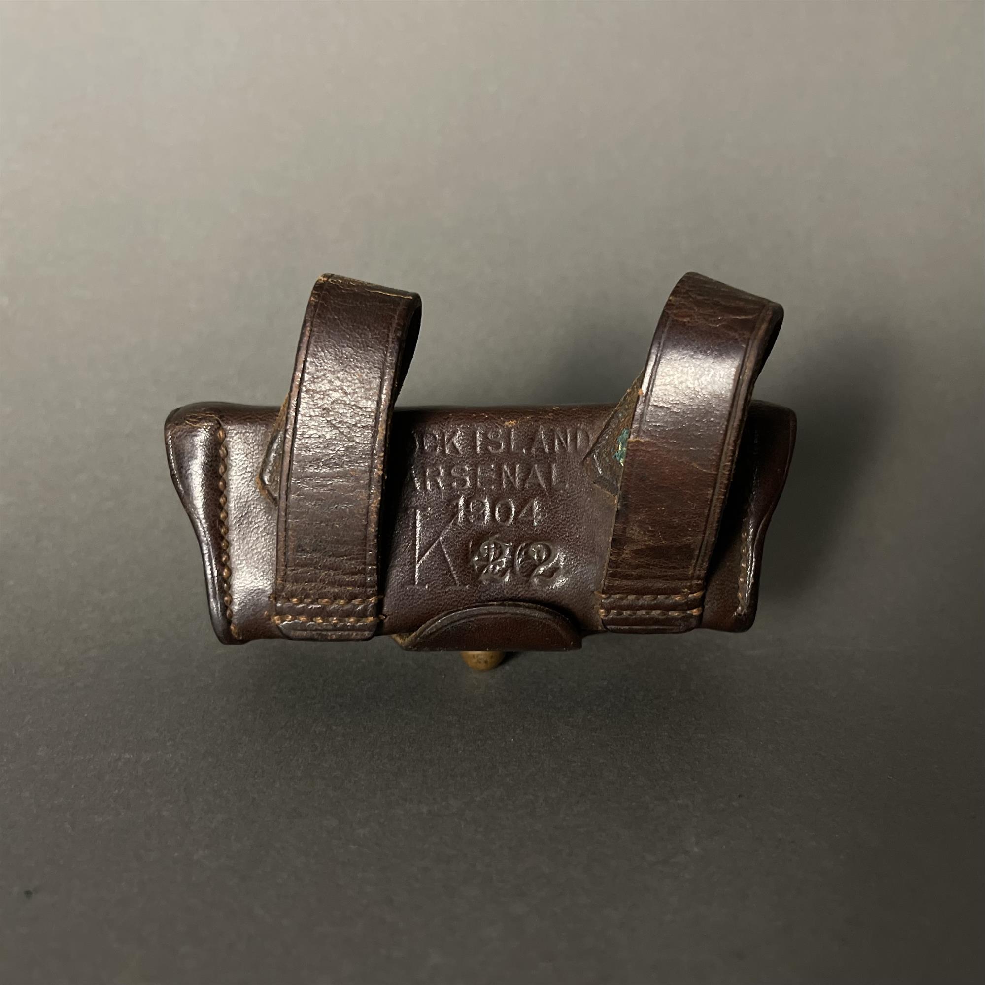 Two US army cartridge cases, both of great quality heavy embossed leather. Smaller stamped ‘Rock Island Arsenal 1904’.