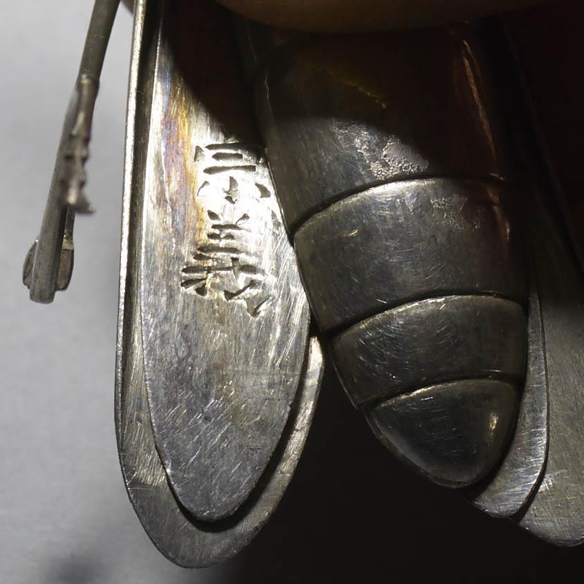 C) A silver articulated model of a hornet, with protracting sting. The wings well chiselled and signed under the inner wing Muneyoshi.