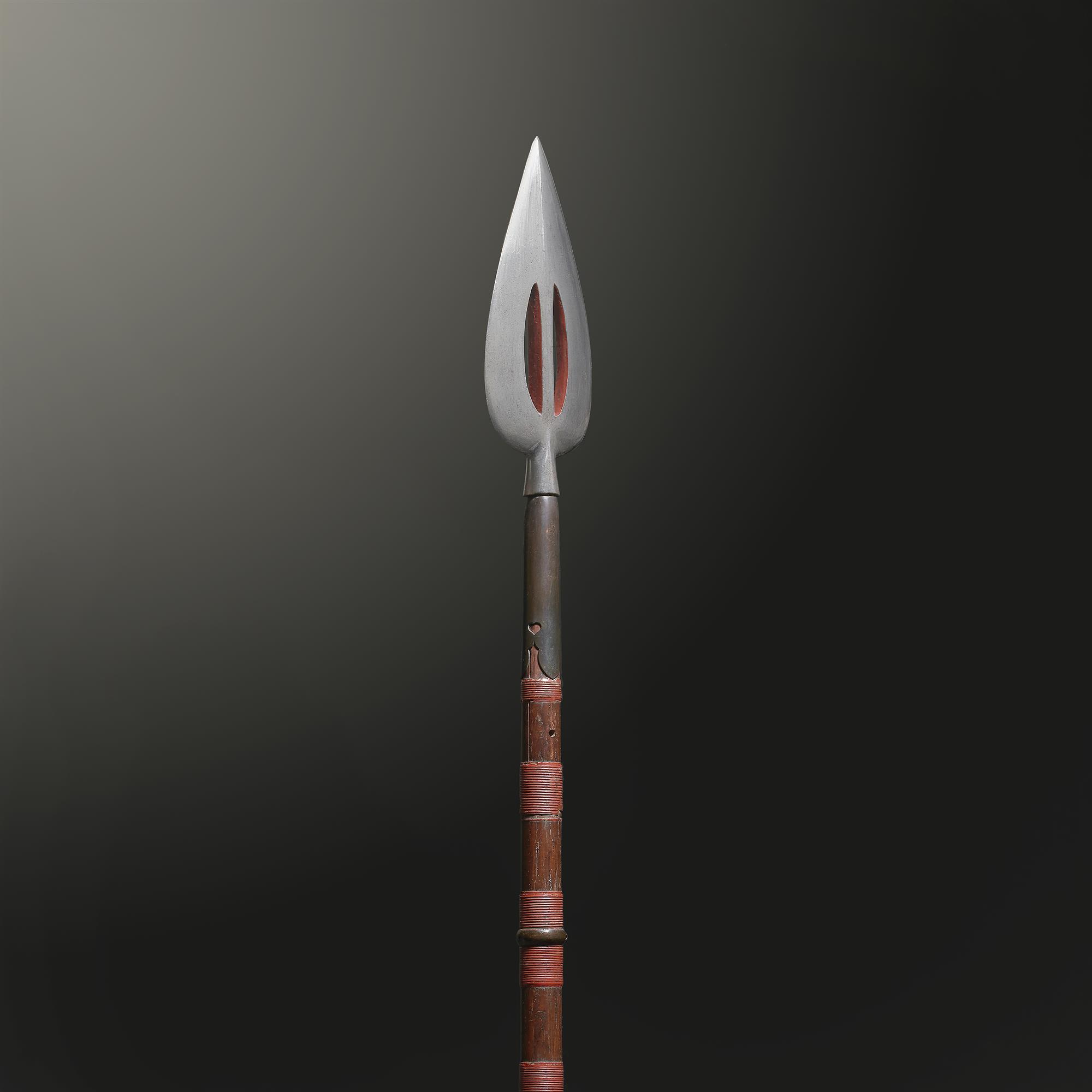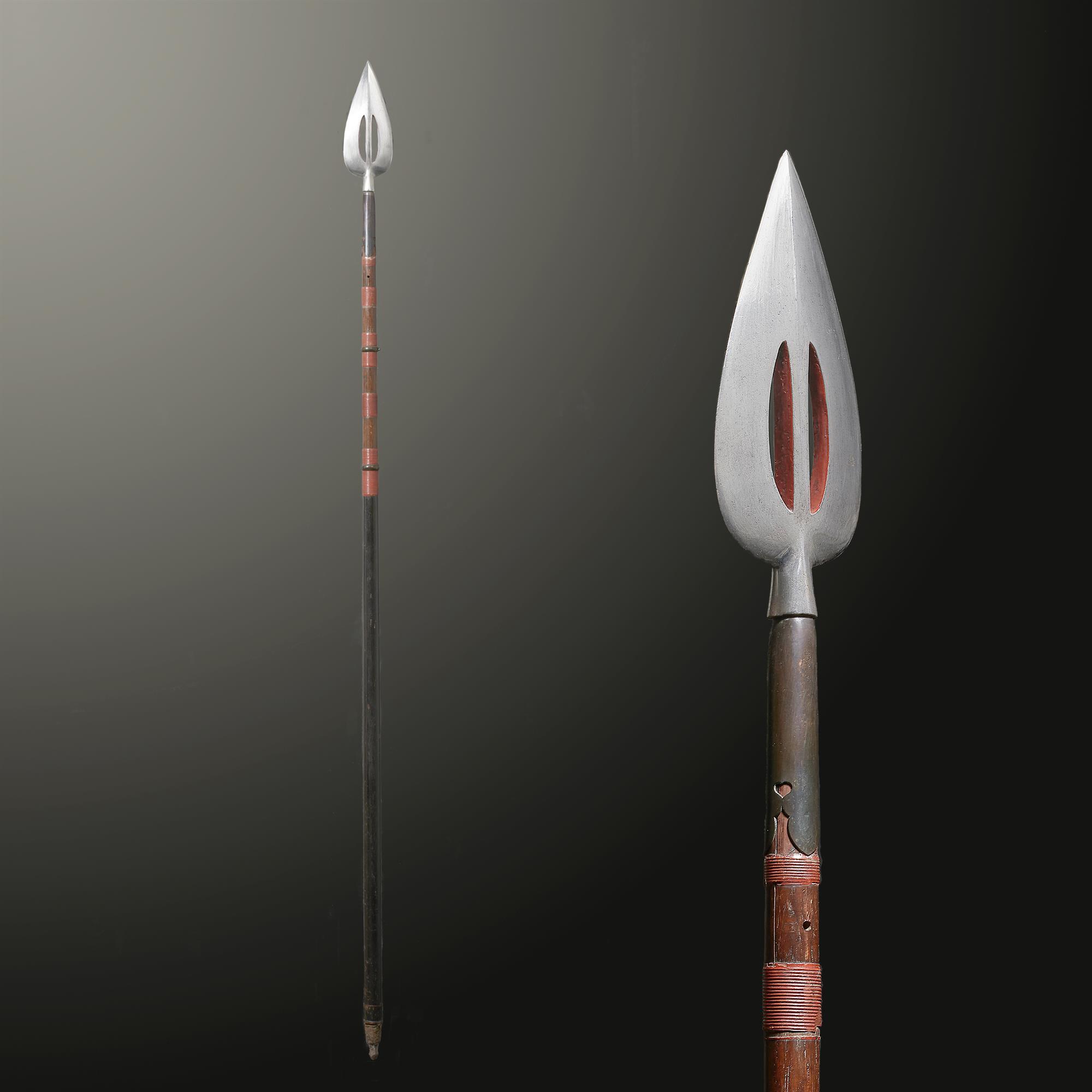 A rare ino-shshi Yari with two cut outs to reduce weight. This form of Yari was probably used by the samurai to hunt wild boar.