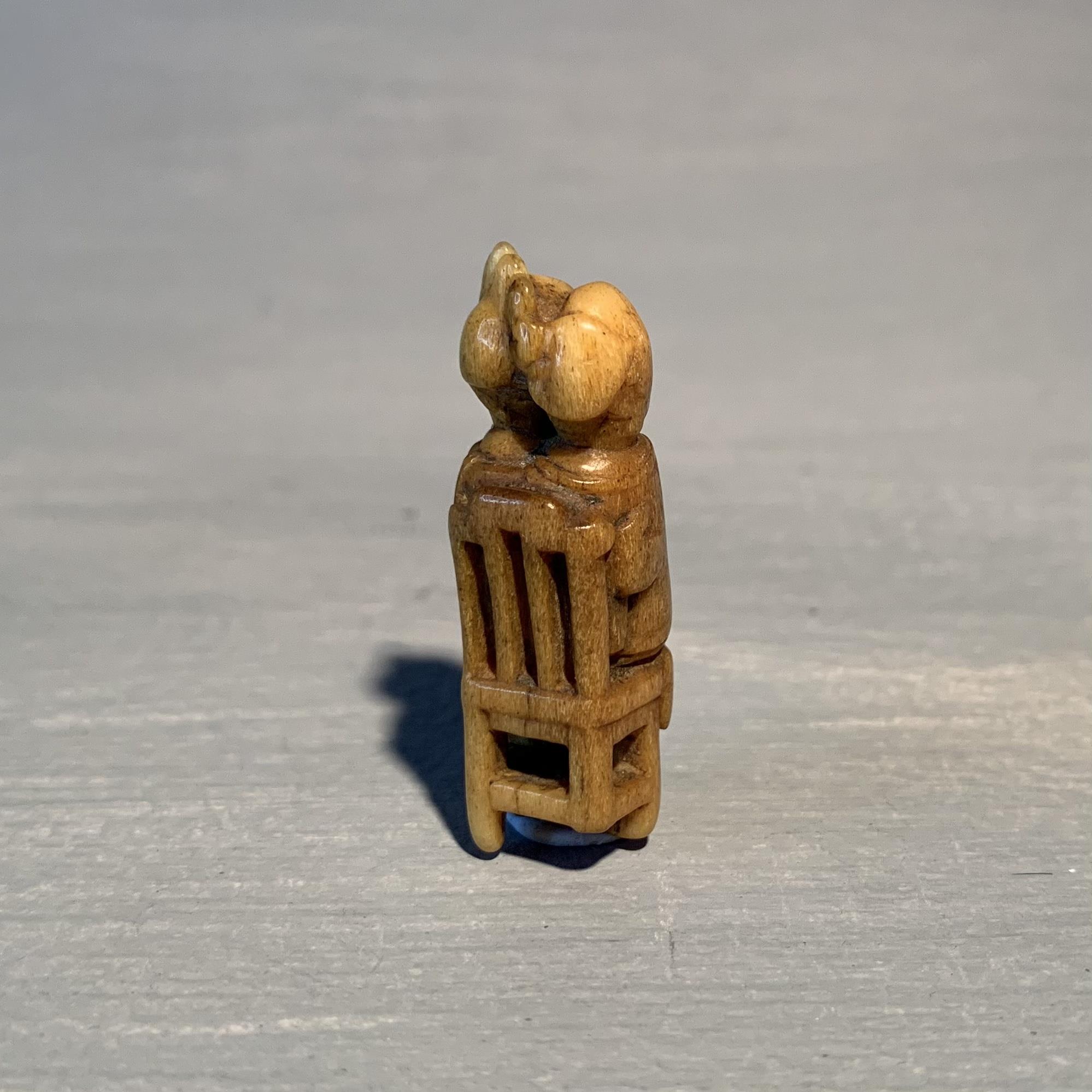 A toggle in marine ivory of an amorous couple upon a monks cap chair. (Small damage to one leg)
