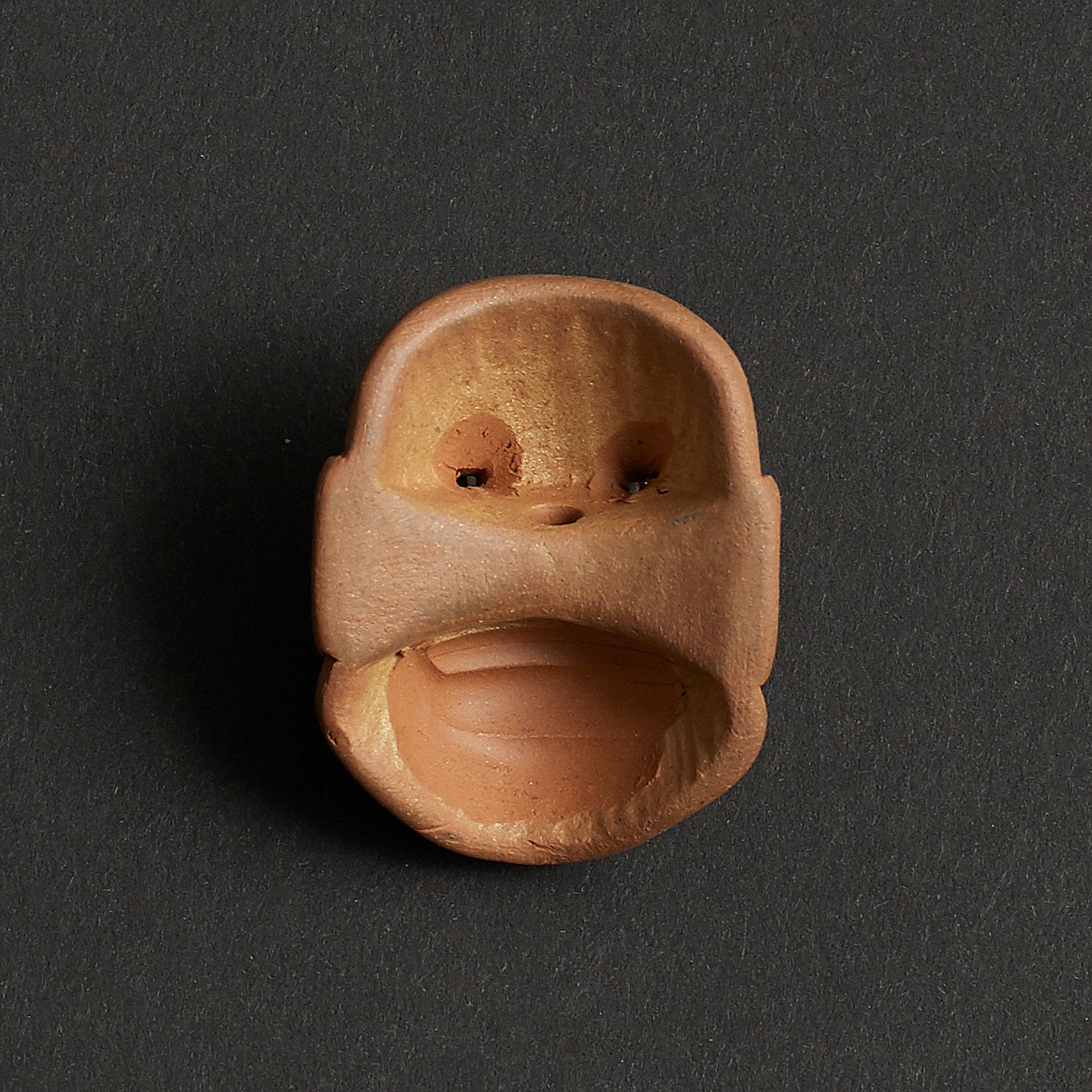 A set of 54 Noh Masks from the Ryokake (theatre) including Onrjo, Fukai, Ja and Yakan. The brown glazes ranging from grey to caramel.