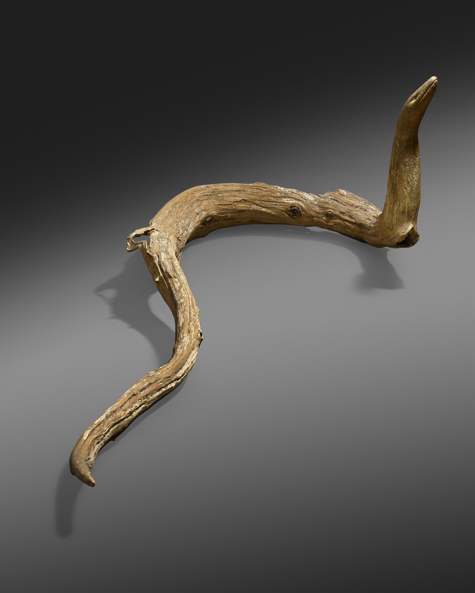 A folk art model of a snake, of a naturally formed curling drift wood. The subtly carved head has simulated scales. Thought to be Scottish.