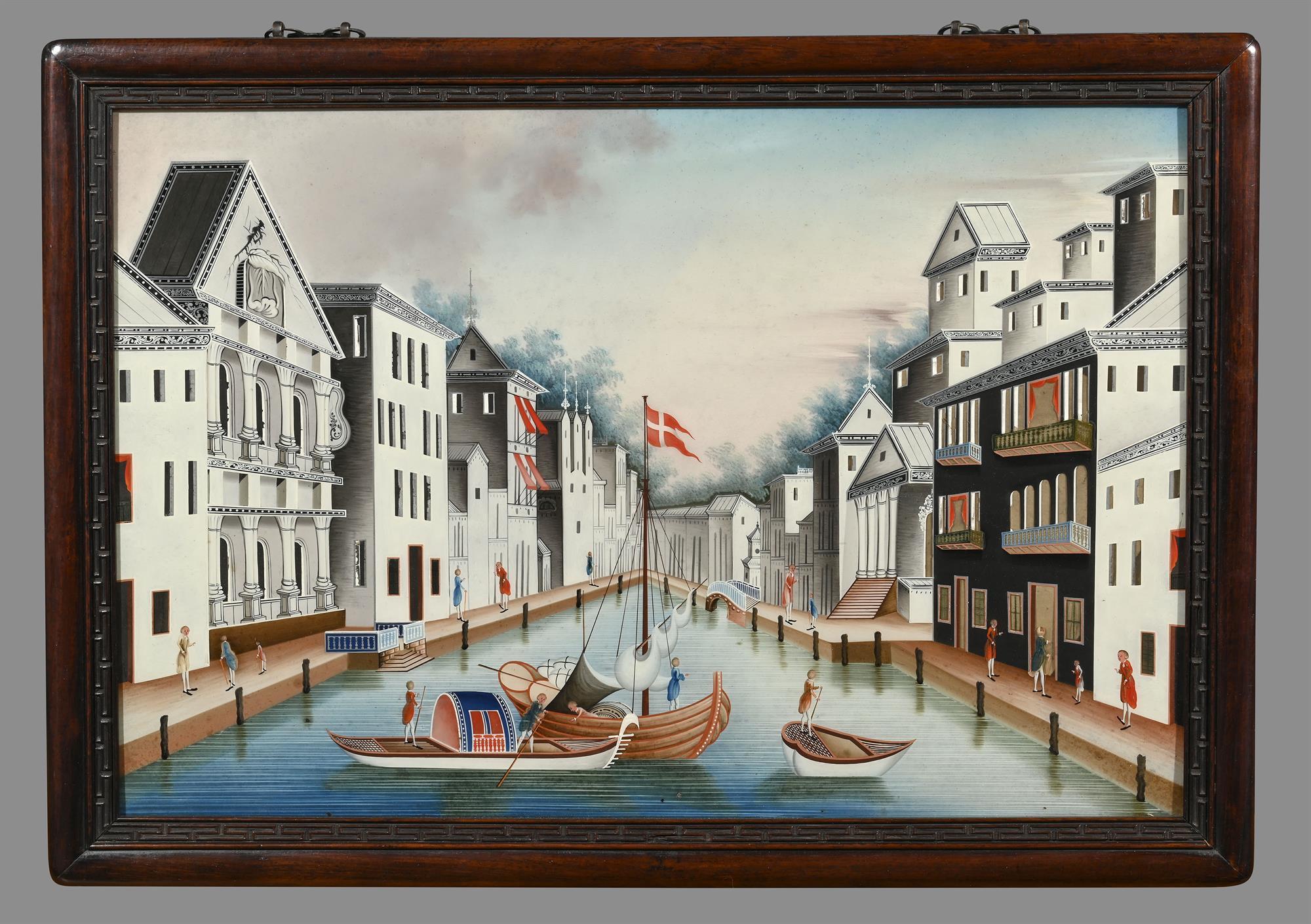 The second painting portraying a very rare view of a busy Copenhagen canal scene, the affluent destination for exotic China trade goods.