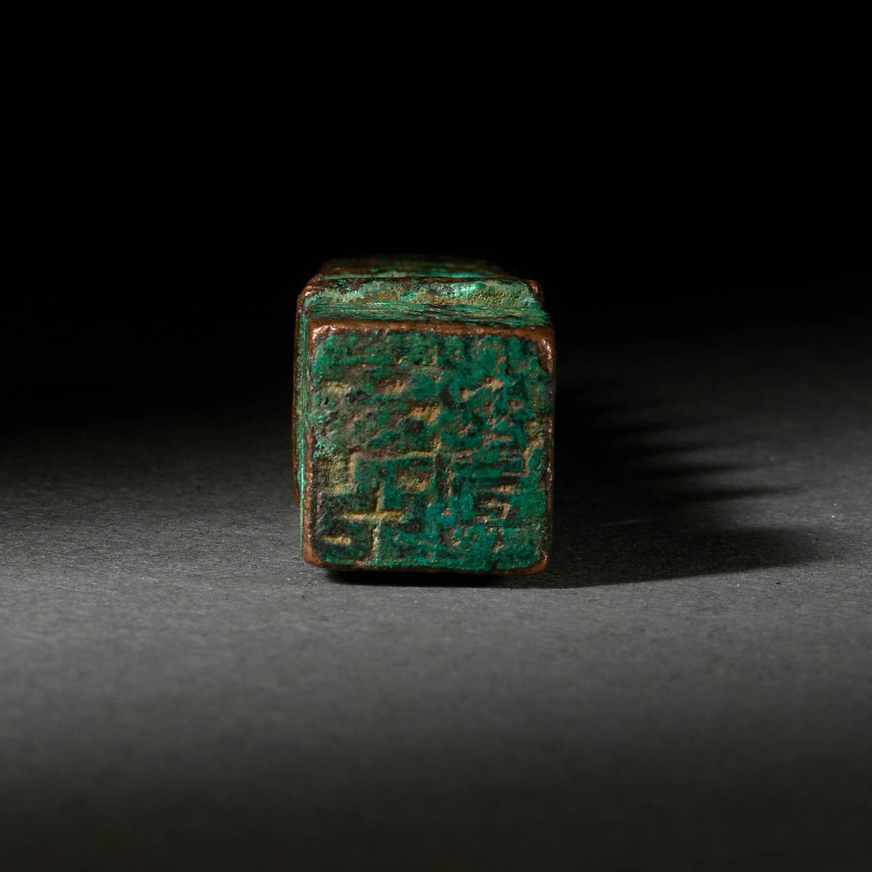 An unusual bronze seal in the form of a pagoda. The face slightly visible through some encrustation. (Ex Niiseki Kinya collection)