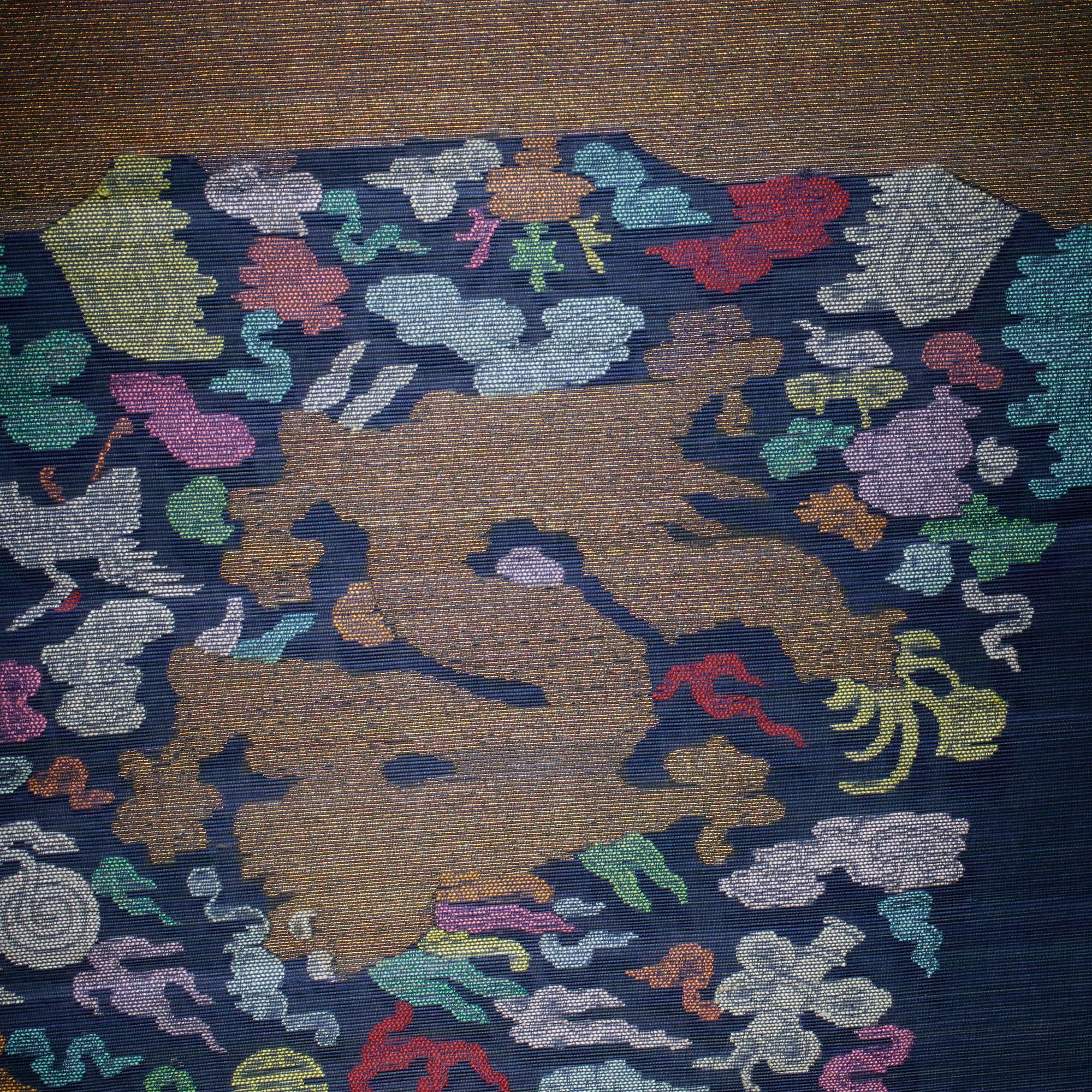 An unusual early 20th Century unmade brocade dragon robe. This complete robe showing original vivid bright colours and condition, including collar, cuffs and even the workshop name.