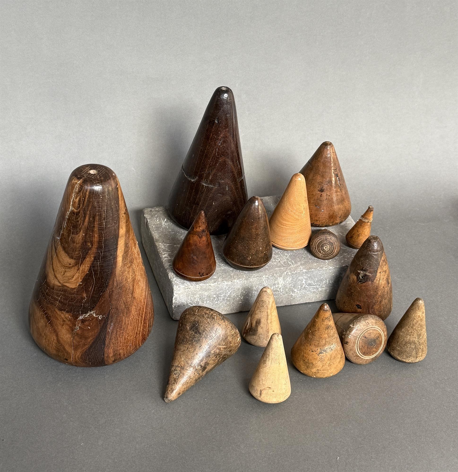 A collection of 15 turnpins in lignum vitae and various hardwoods, all of good colour, found in Norfolk.