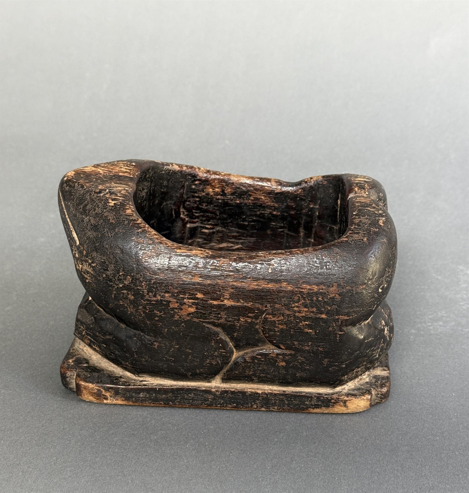 A provincial wooden container modelled as a frog.