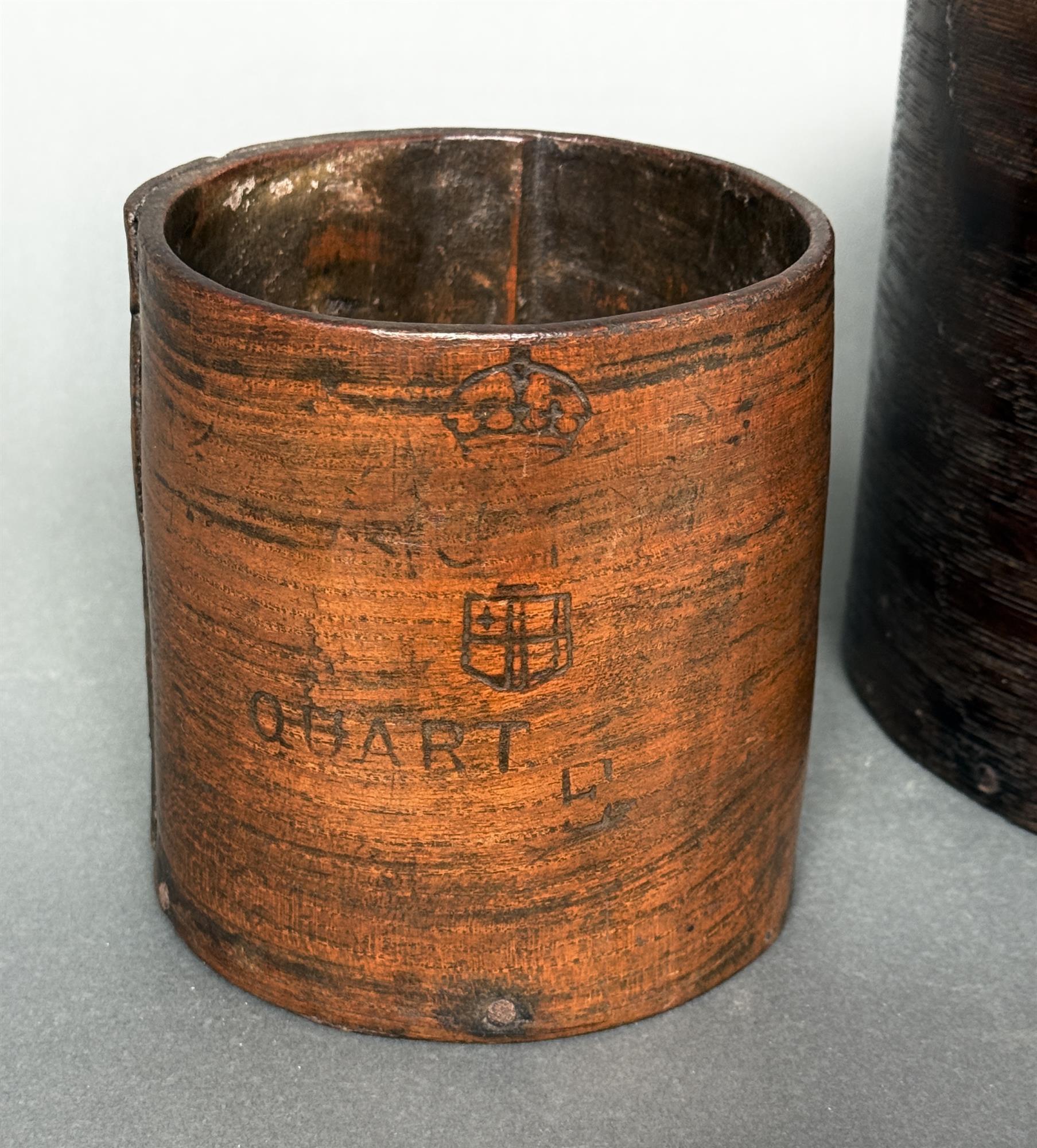 Two wooden measures Quart and 1 gallon, pegged and stamped