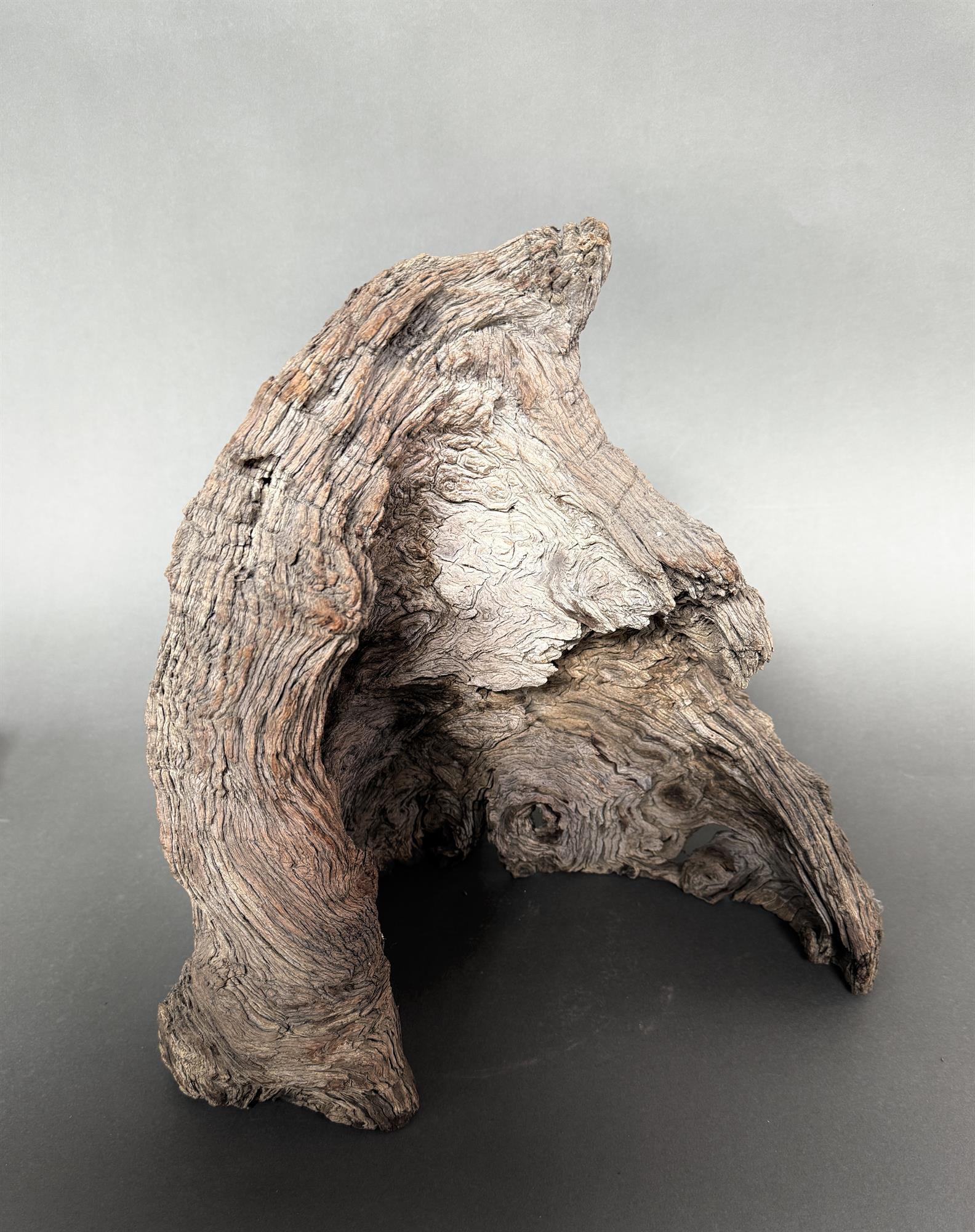 A natural gnarled desert root sculpture.