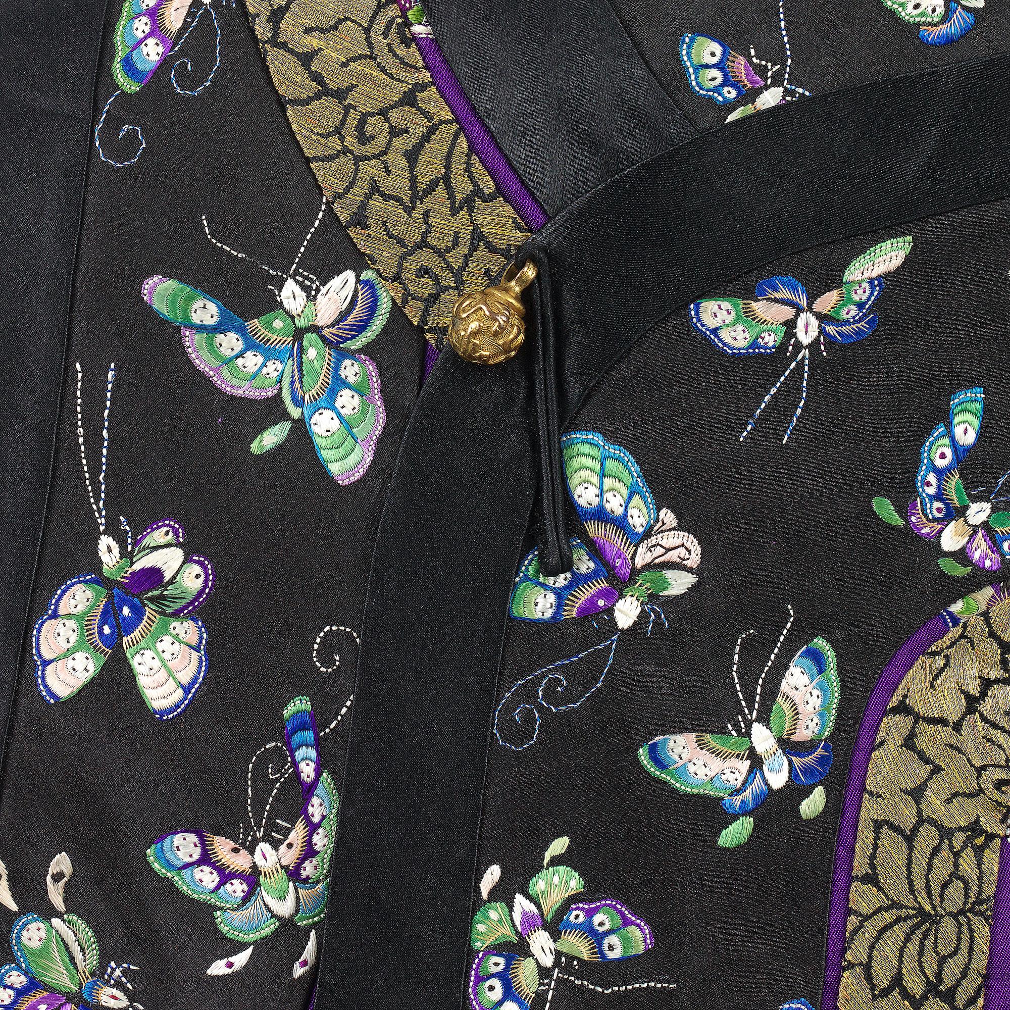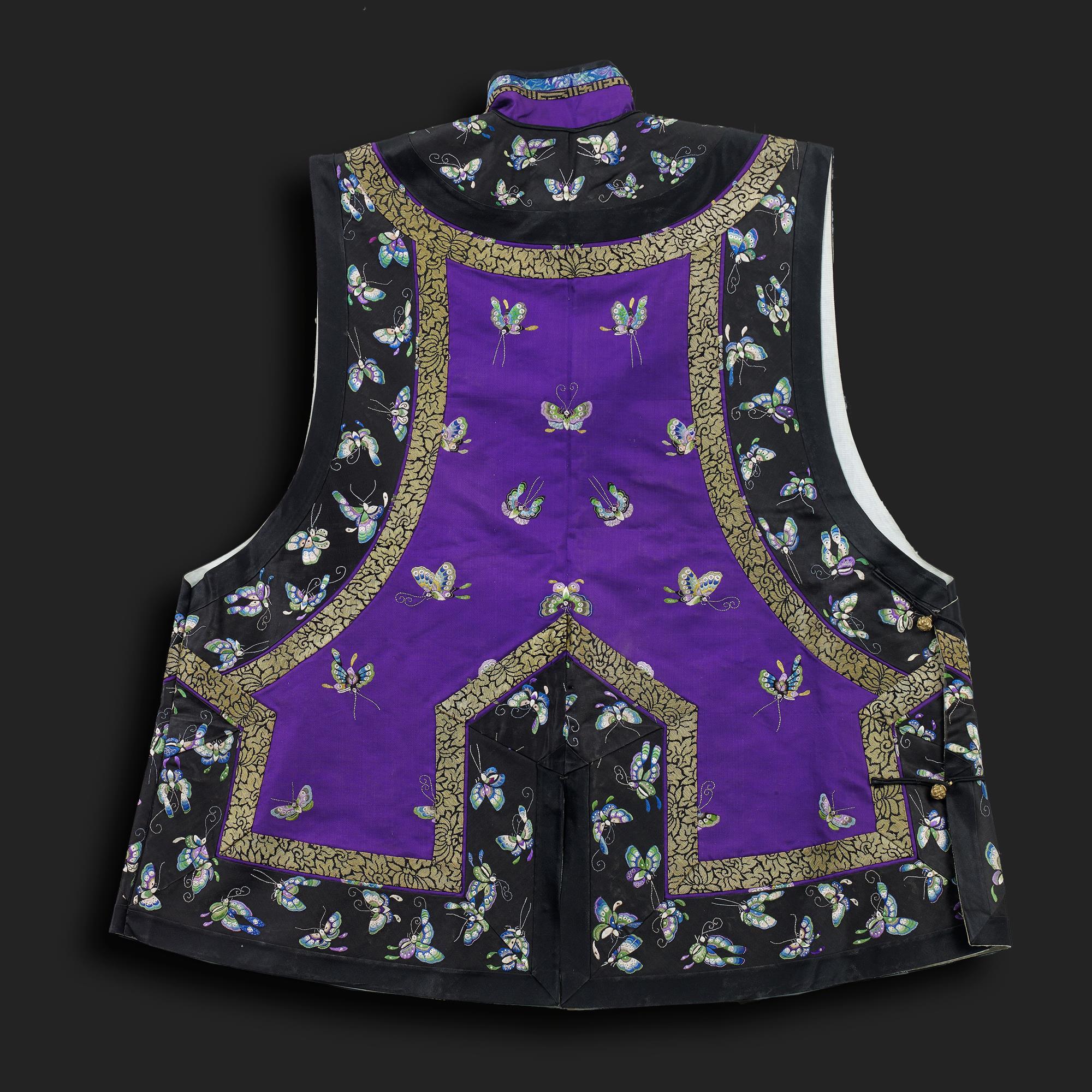A Chinese finely embroidered waistcoat sparsely decorated with exotic and multi-coloured butterflies, the design repeated on the border.