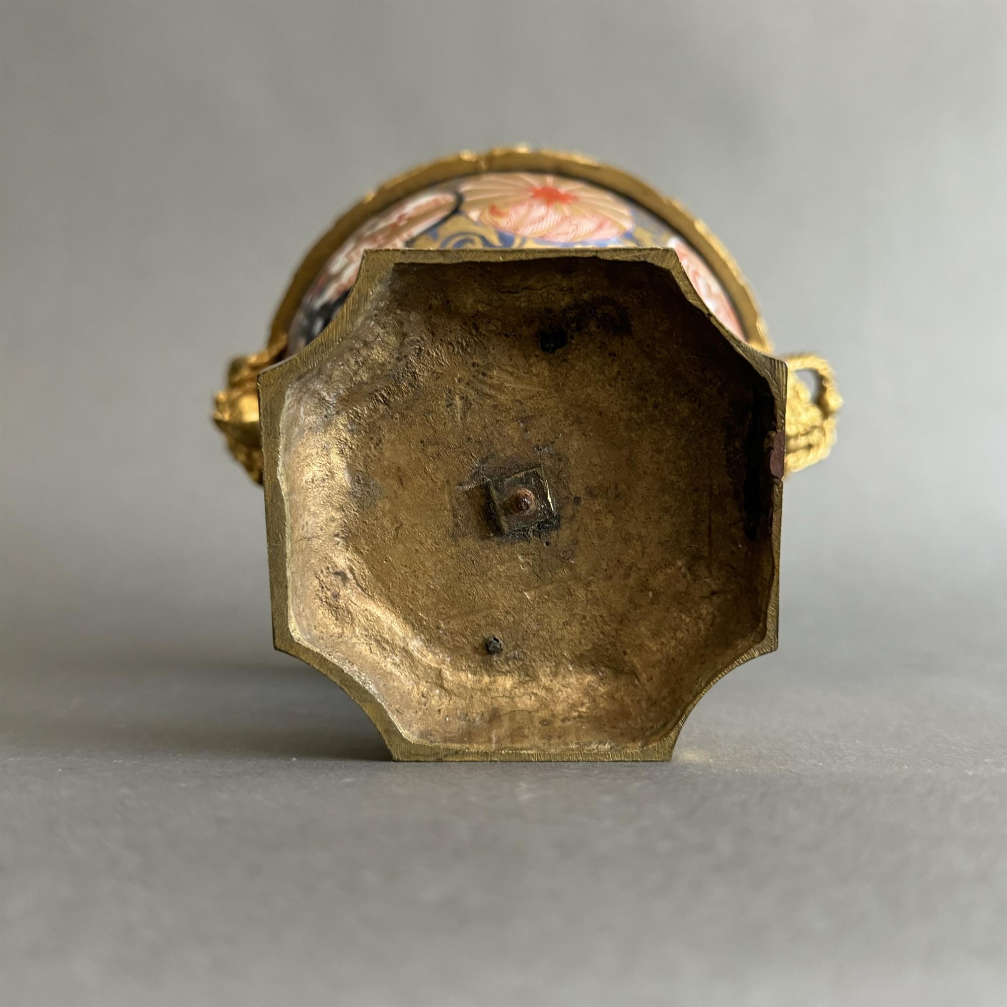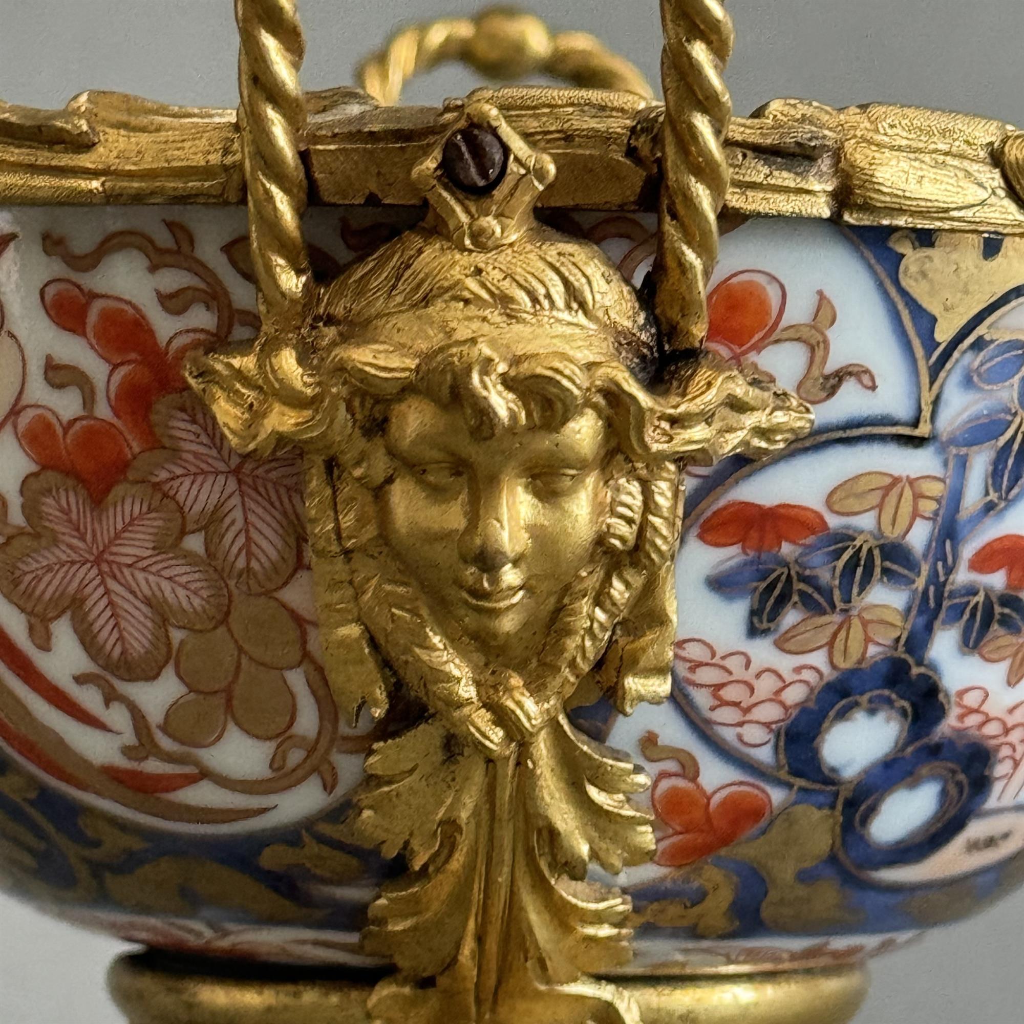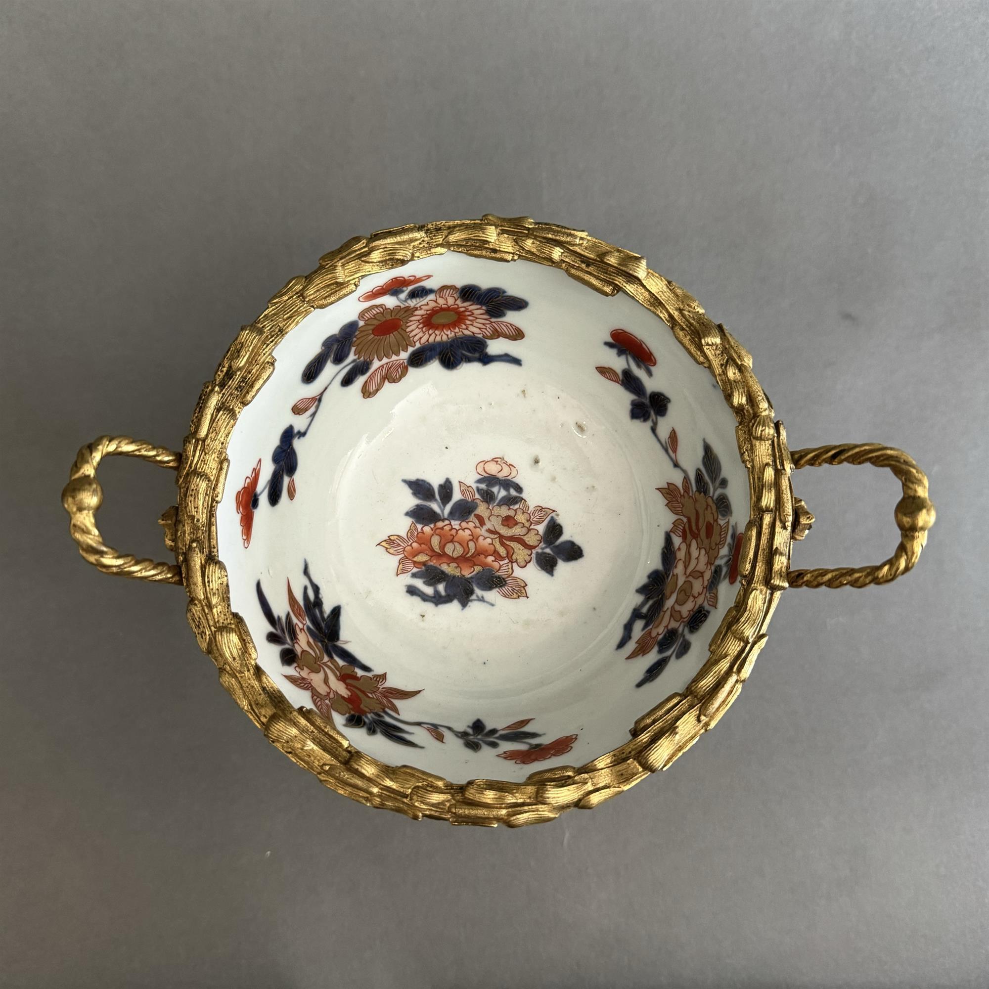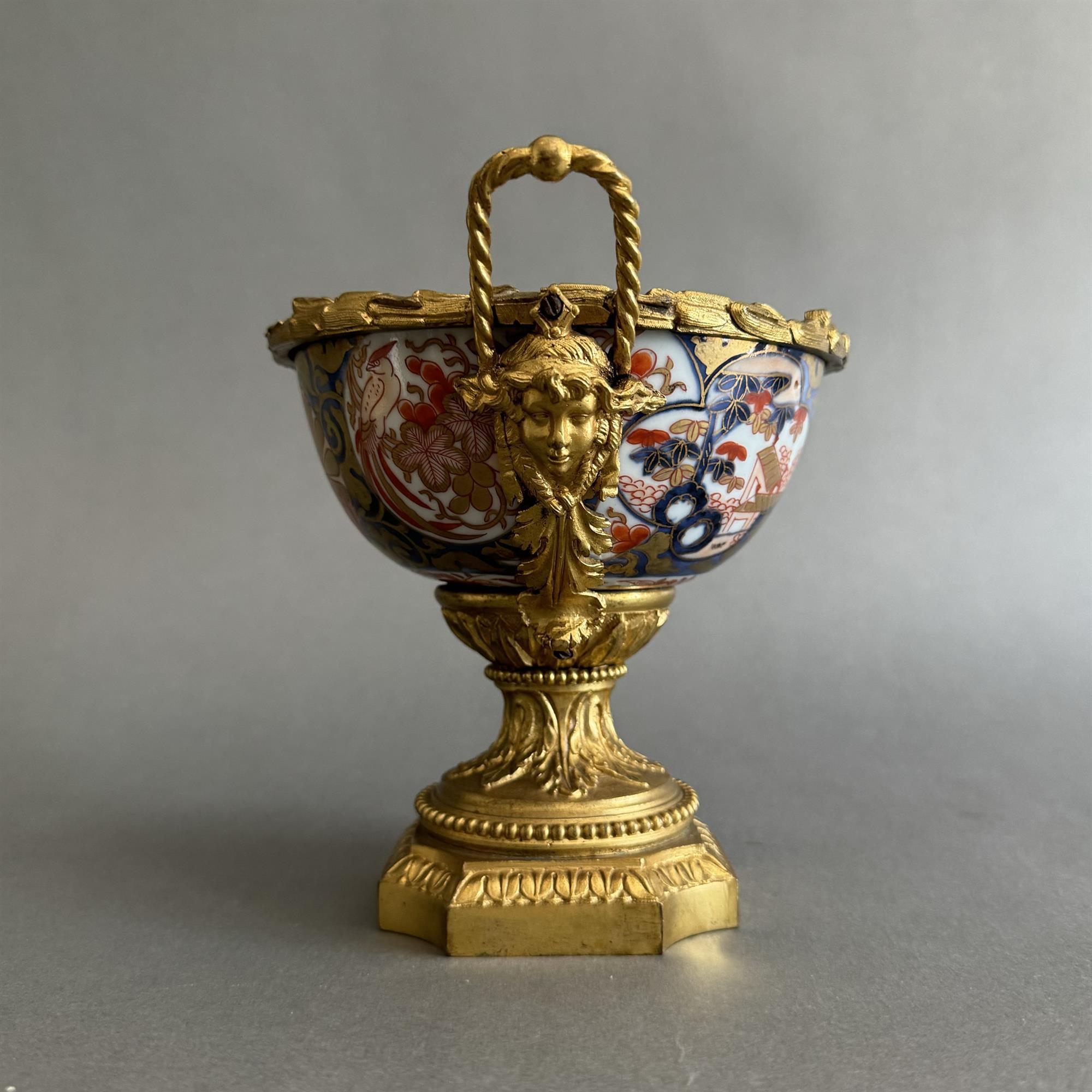An exotic diminutive porcelain bowl in the Japanese manner, finely mounted in gold ormolu.