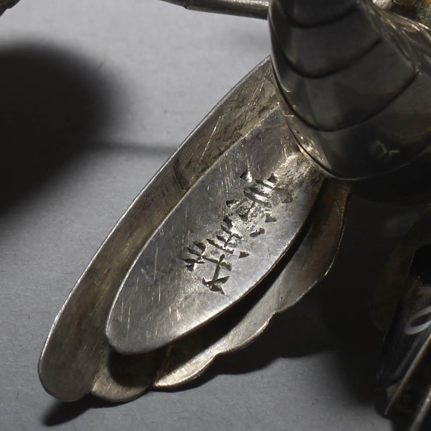 C) A silver articulated model of a hornet, with protracting sting. The wings well chiselled and signed under the inner wing Muneyoshi.