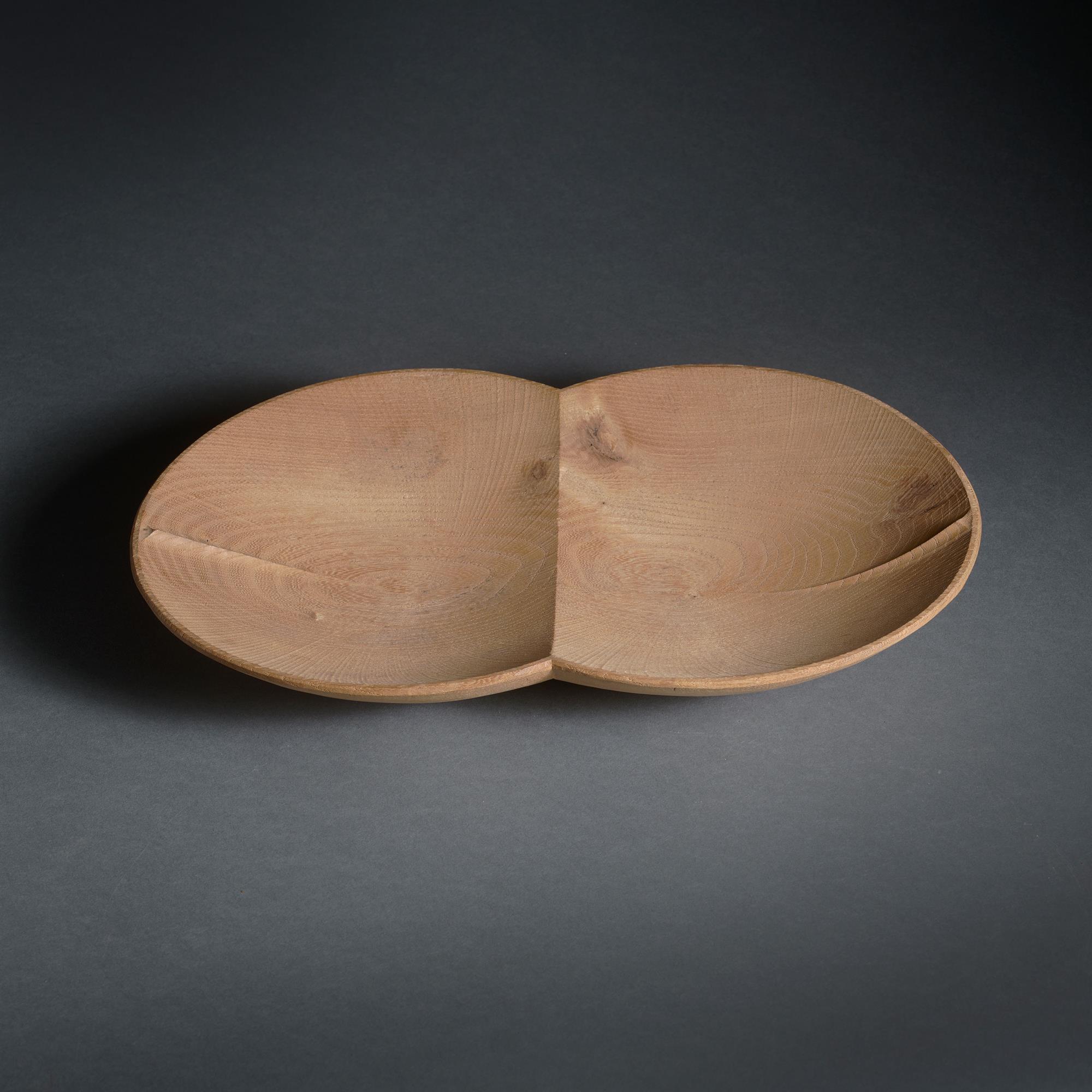 Beautifully designed shallow dish and worked in maple wood, stamped with makers mark, Davie Pye. The maker was an architect, industrial designer, professor of furniture at the Royal College of Art (RCA). He saw the aesthetic importance of nature in workmanship and design in the mid 20thcentury. See other in the Victoria & Albert Museum.